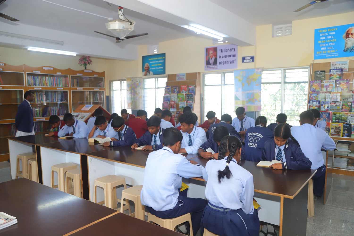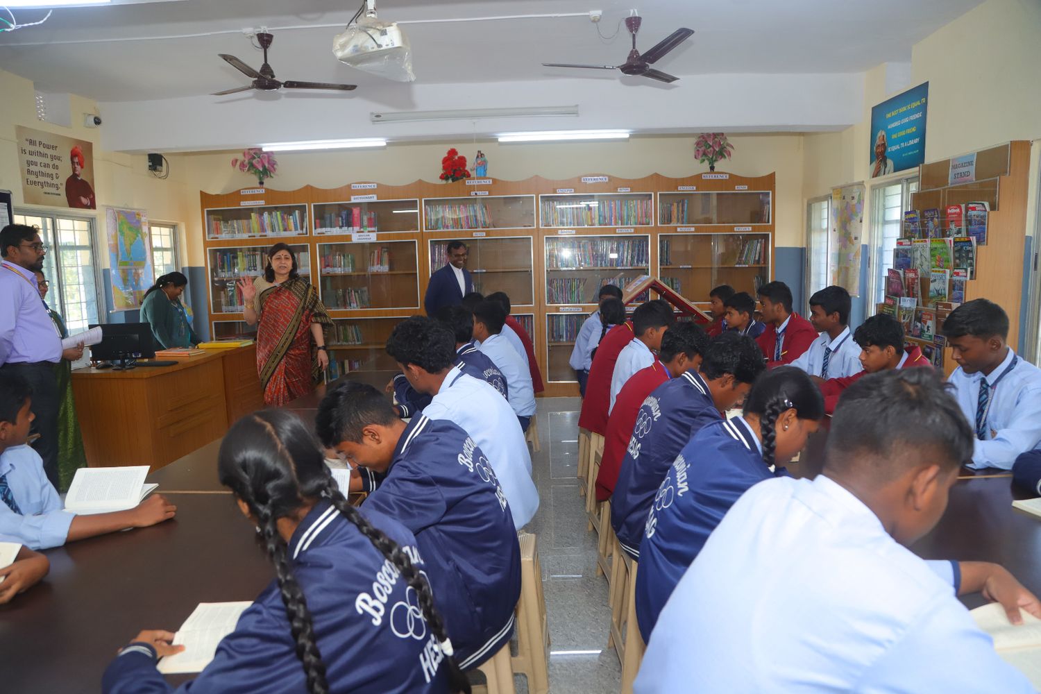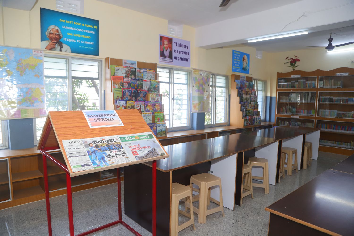 The school library is a well-organized and inviting learning space designed to foster a strong reading culture and intellectual curiosity among students. It offers an extensive and diverse collection of books, including folk tales, fiction, biographies, encyclopedias, comics, science fiction, reference materials, and general knowledge books to suit different age groups and interests. The library provides a calm and resource-rich environment that encourages students to read, research, and explore ideas beyond the classroom. With easy access to informative and imaginative literature, the library supports academic growth, creativity, language development, and the development of lifelong reading habits.